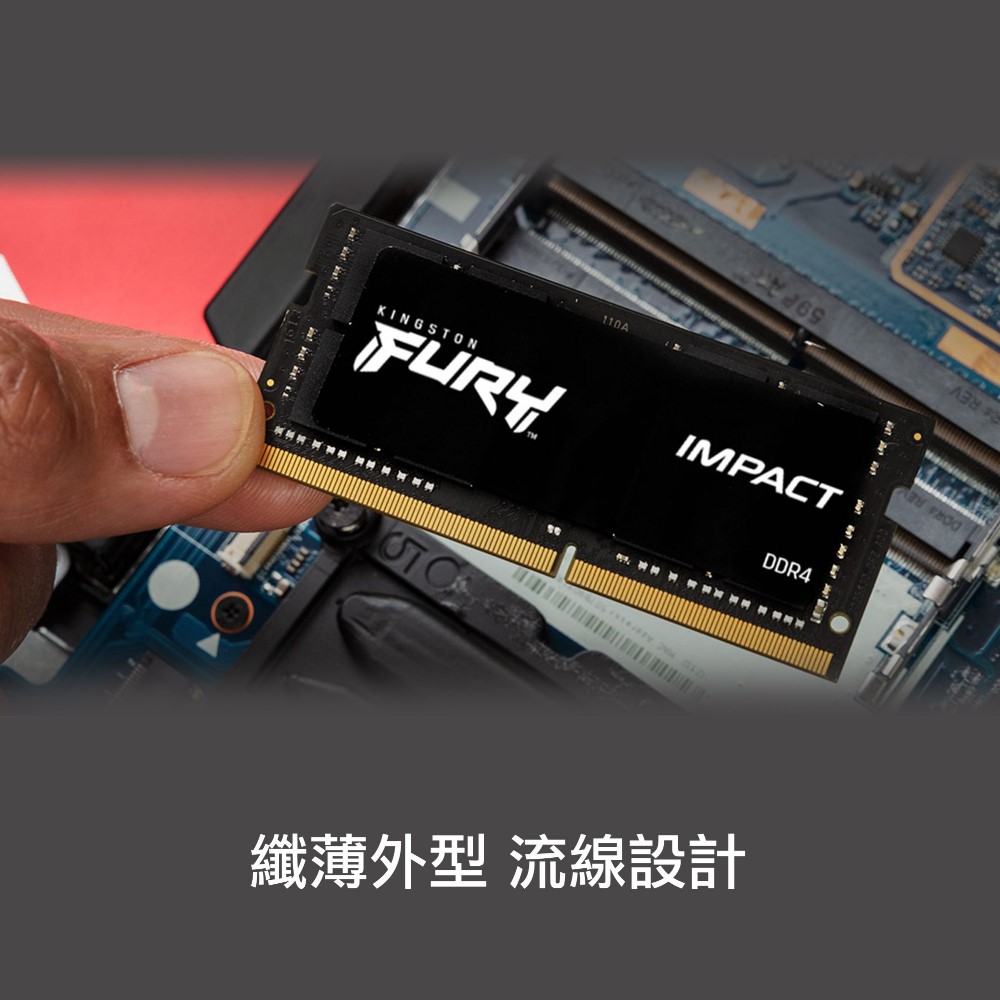 16GB 3200MHz DDR4 CL20 SODIMM FURY Impact (1Rx8,8顆粒,雙面) |